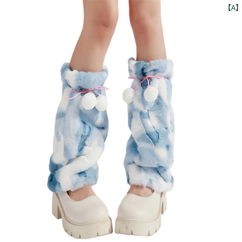 レッグウォーマー ユニセックス 秋冬 保温 裏起毛 フェイクファー ふわふわ ロリータ かわいい ブルー迷彩 ブーツカバー Y2Kファッション(x2)