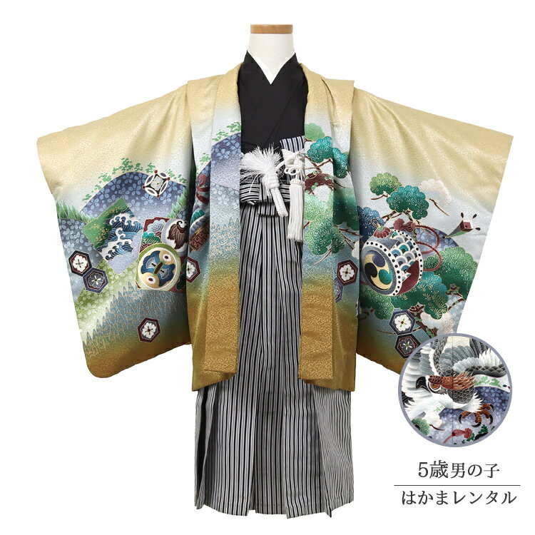 七五三 着物 5歳 男の子 フルセット レンタル 着物 七五三 袴 男の子 セット 貸衣装 貸衣裳 5歳 七五三 レンタル 五歳 男児 羽織 袴 セット 七五三 5歳 着物レンタル おしゃれ 着物 フルレンタル 男の子 鷹 ベージュ 往復送料無料 身長100cm前後 775S02【レンタル】