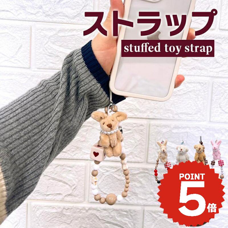 スマホストラップ 手首 韓国 チャーム ストラップ キーホルダー バッグチャーム 携帯チャーム 飾り うさぎ くま モチーフ かわいい おしゃれ レディース 大人 女子 ペア