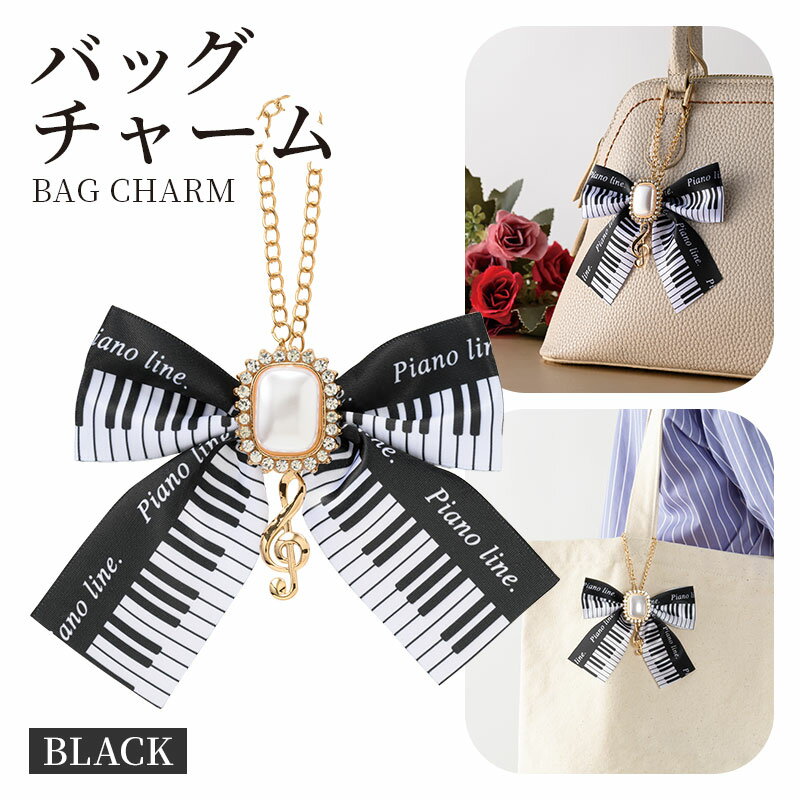ピアノライン 鍵盤リボンバッグチャーム(ト音記号) ブラック piano line ピアノ発表会 音楽発表会 演奏会 ピアノ教室 音楽教室 記念品 ギフト プレゼント ピアノ雑貨 音楽雑貨 ピアノグッズ ピアノ柄 かわいい 鍵盤柄 音符柄 おしゃれ