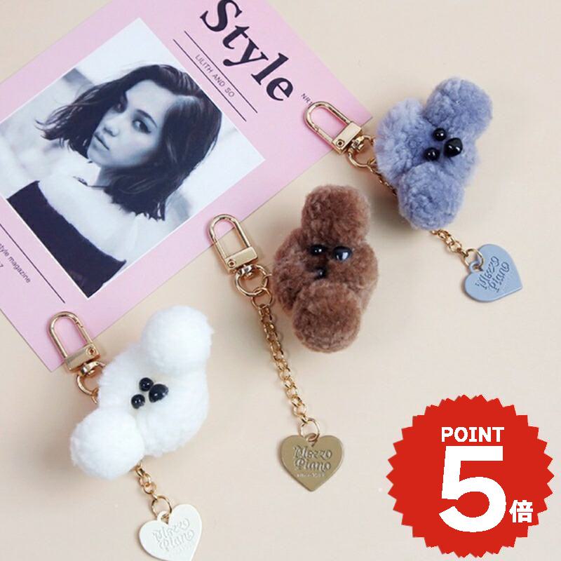 アクセサリー チャーム キーリング キーホルダー チェーン バッグ 財布 ポーチ かわいい シンプル おしゃれ 飾り 犬 dog わんちゃん モチーフ もこもこ ふわふわ