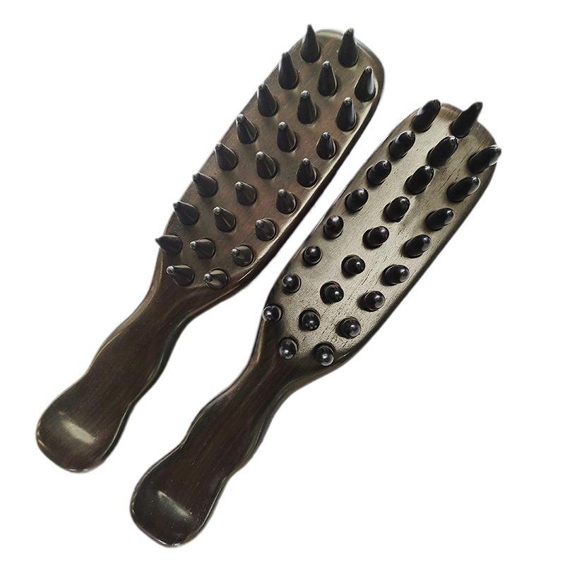 ヘアブラシ 木製 くし 櫛 ヘアーコーム マッサージ パドルブラシ 頭皮 マッサージ 黒檀 指リング付き 檀木 尖錐歯 子弾歯 方円 曲円