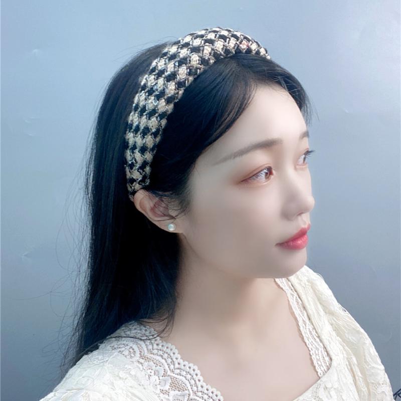 ヘアアクセサリー 秋冬 女性用 ハイトップ ヘアバンド 海綿素材 気質 小香風 トゲトゲ飾り 金糸 ダイヤモンド柄 格子柄 頭飾り 軽量 伸縮性 通勤用 普段使い ブラック グレー ピンク系 アイボリー