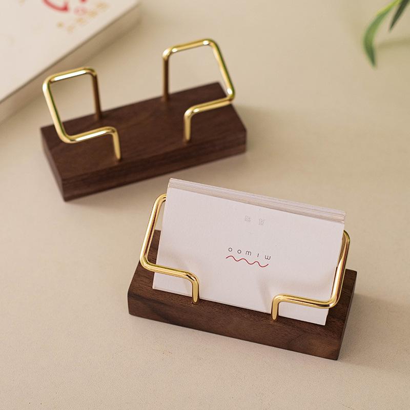 カードホルダー 金属製 デスク 卓上 名刺スタンド アクリル製 カードケース ブラック 黒 胡桃 幾何学模様 ビジネス(x2)