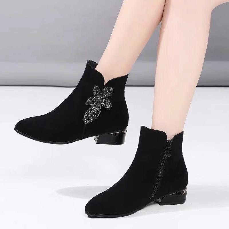 靴 レディース 秋冬 ショートブーツ 快適 ベルベット調 ポインテッドトゥ ブーティ 滑り止め 暖かい ママシューズ