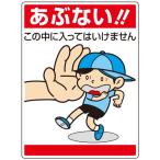 『商品の特長』●子供にもわかりやすいイラスト入りの標識板です。 『商品の仕様』 ●表示:あぶない!この中に入ってはいけません ●サイズ:600×450mm×1.2mm厚 ●材質:エコユニボード 4スミ穴あり ●入数:1枚・・・