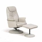 リクライニングチェアー 合成皮革張りハイバックチェア/パーソナルチェアー、オットマン(足置き付)アイボリー色 2色対応